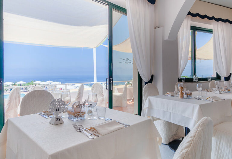 - Restaurant „Il coniglio del mare“ (Frühstücksbuffet von 8:00-10:30 Uhr) Halbpension nur vor Ort buchbar und zahlbar.